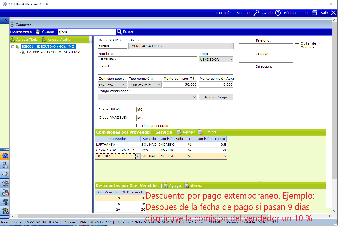 CONFIGURACIÓN - CATÁLOGOS - EJECUTIVOS/CONTACTOS - COMISIONES/DESCUENTOS