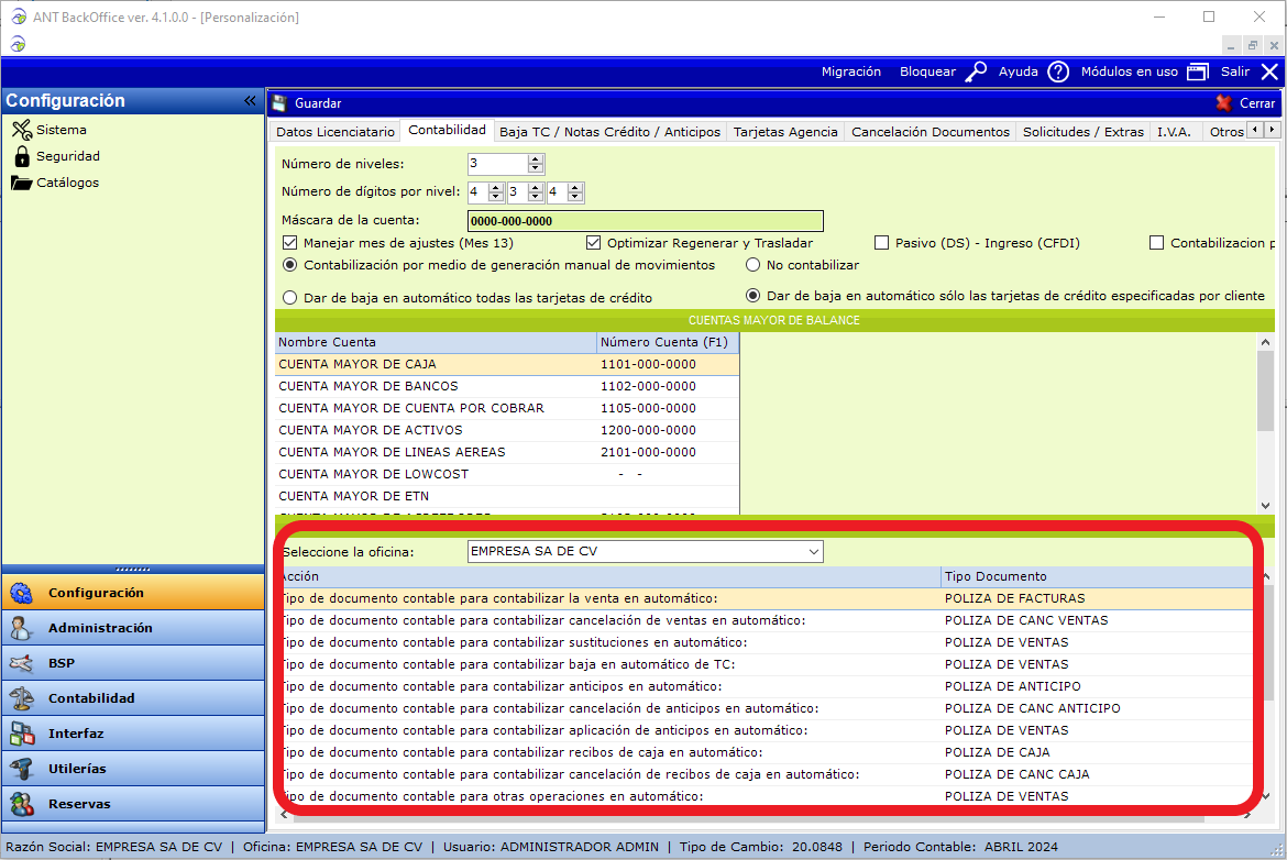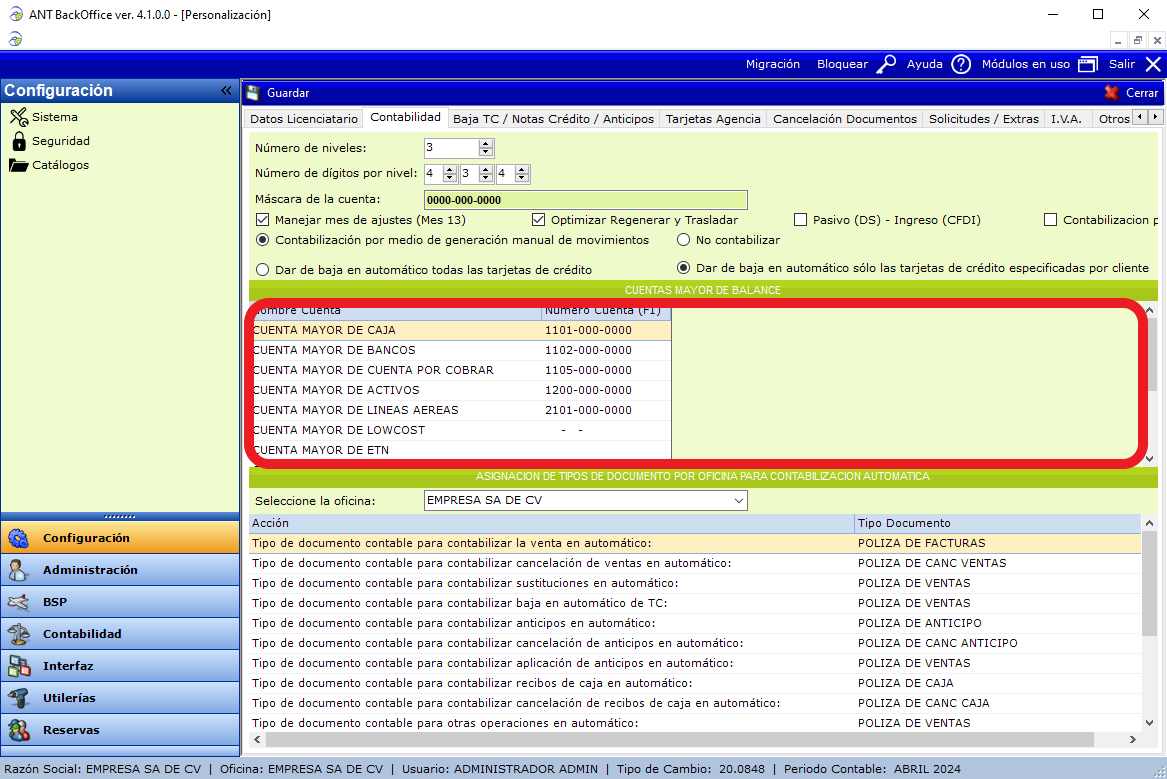 CONFIGURACIÓN - SISTEMA - PERSONALIZACIÓN - CONTABILIDAD - CUENTAS MAYOR Y DE BALANCE