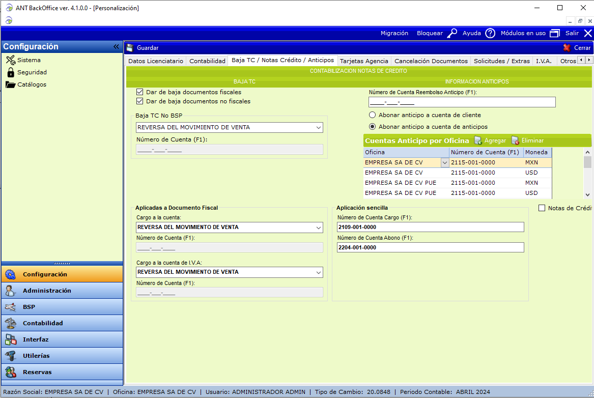 CONFIGURACIÓN - SISTEMA - PERSONALIZACIÓN - CONTABILIDAD - BAJA TC/NC/ANTICIPOS